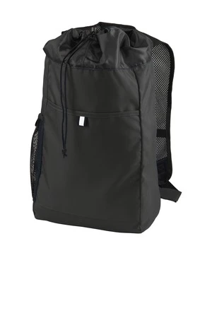 Reflective webbing tab on slip pocket and side mesh beverage pocket