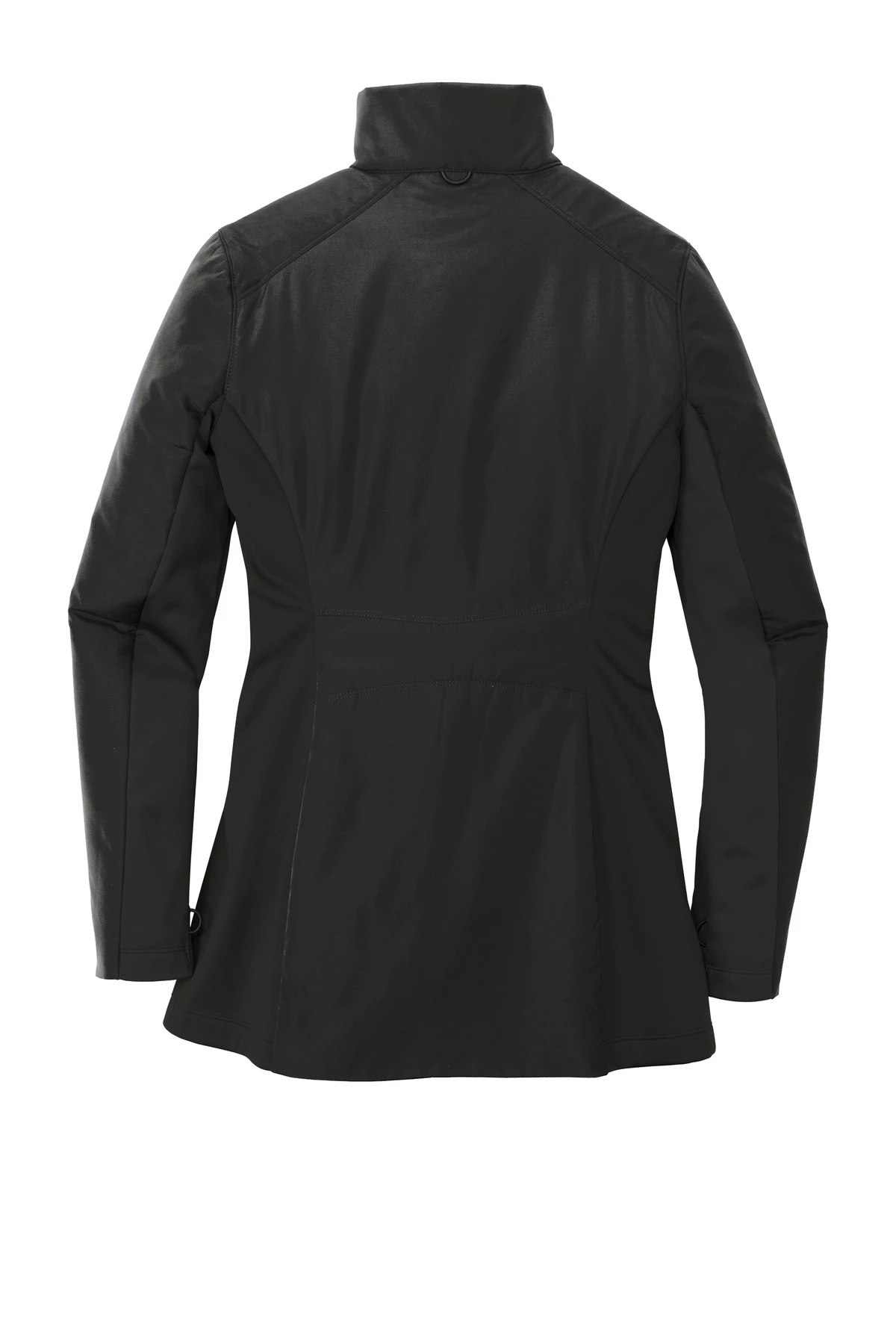 100% polyester knit bonded to a water-resistant film insert and a 100% polyester microfleece lining at side panels and under arms