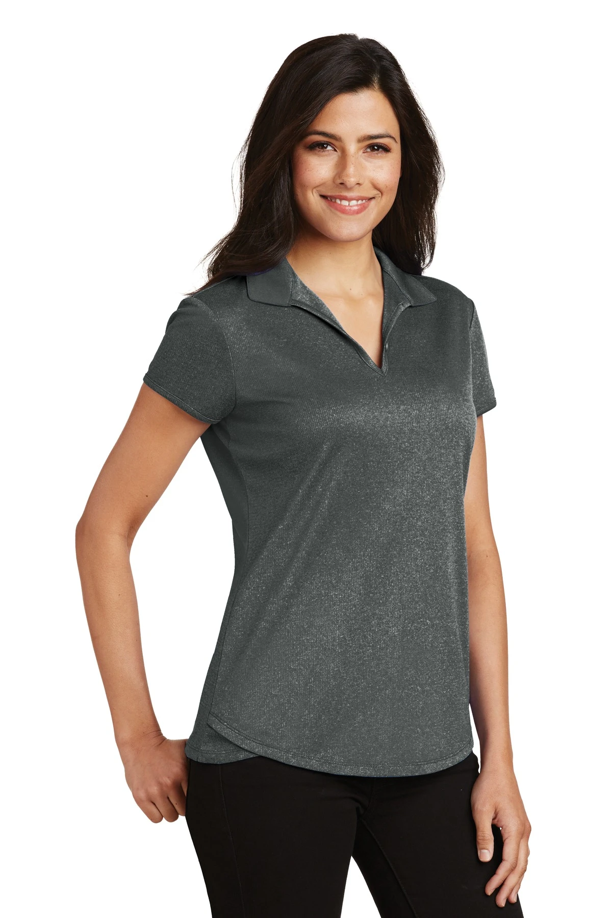 Breathe new life into your office look with this active-inspired, heathered performance polo that wicks moisture and resists snags.